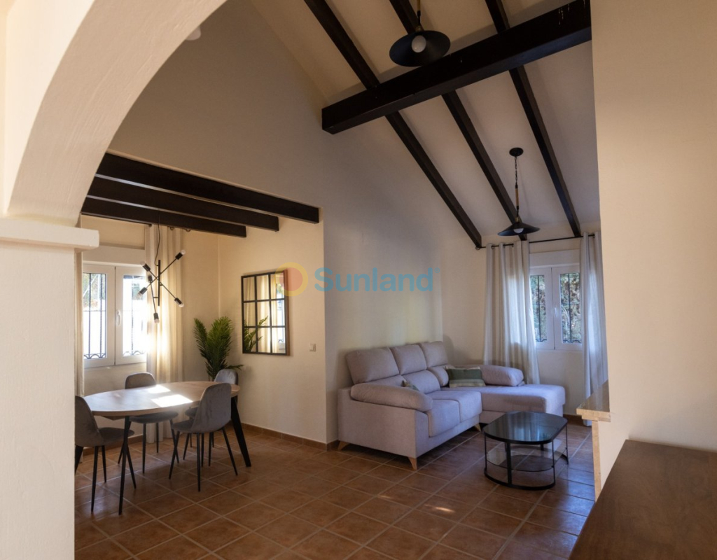 VILLA CLÉ EN MAIN À FUENTE ALAMO, MURCIA Résidence de maisons de ville, villas indépendantes et jumelées à Fuente Álamo, Murcia. Vous pouvez choisir parmi sept modèles de maisons différents, conçus pour répondre aux goûts de chacun. Des conceptions rustiques combinées à des matériaux de première qualité et un accent mis sur un espace de vie confortable, il y en a pour tous les goûts. Les résidents de cette communauté privée de belles et spacieuses maisons pourront également profiter de leurs propres jardins et piscines communs. Cette villa au design inhabituel comprend 3 chambres et 2 salles de bains, une cuisine indépendante, un salon avec des portes-fenêtres donnant sur le porche couvert. Une option pour une piscine privée à un coût supplémentaire. Fuente Álamo de Murcia est une ville et une municipalité de la région de Murcie, dans le sud de l'Espagne. Elle est située à 22 km au nord-ouest de Carthagène et à 35 km au sud-ouest de Murcie. La ville se trouve dans le bassin de la Mar Menor, entourée par les montagnes d'Algarrobo, Los Gómez, Los Victorias et le Carrascoy. L'eau de ces montagnes s'écoule dans la Rambla de Fuente Álamo et ensuite dans la Mar Menor. Fuente Álamo se trouve à 30 minutes de l'aéroport de Murcia - Corvera.