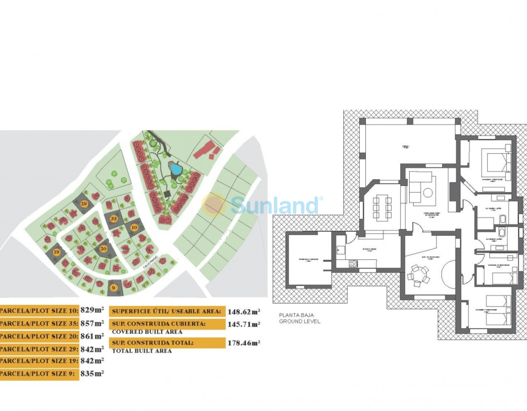 - Superficie du terrain: 861m2