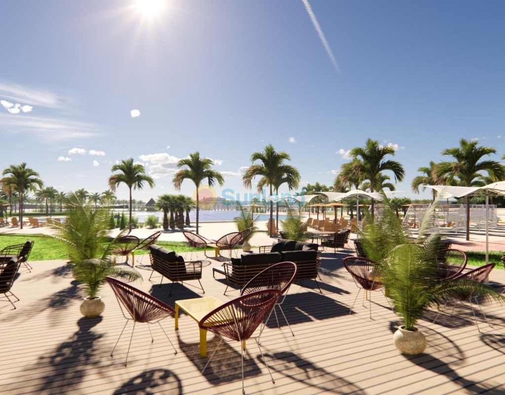 APPARTEMENTS NEUFS DANS UN COMPLEXE PRIVÉ FERMÉ DANS LA PROVINCE DE MURCIE Complexe résidentiel neuf de 6 blocs, soit un total de 42 appartements. Les beaux appartements ont 3 et 2 chambres à coucher et 2 salles de bains avec vue sur le grand lac et les espaces verts de ce grand complexe de luxe. Appartements au rez-de-chaussée avec jardin privé, appartements au dernier étage avec solarium privé. Le complexe dispose d'une piscine commune et tous les appartements ont une place de parking et une salle de stockage. Situé dans un complexe privé, avec une entrée principale et une sécurité 24 heures sur 24. Le complexe est conçu autour d'un impressionnant espace vert de 126.000 m2. Il comprend des sentiers pédestres et des pistes cyclables, des installations sportives, des courts de paddle et de tennis, un mini-golf, des jardins, des parcs pour chiens, des zones de loisirs, un clubhouse..... Dans la zone centrale se trouve également le joyau de la station, un lac artificiel cristallin de près de 17 000 m2 de surface d'eau, entouré de plages de sable blanc et de palmiers, apportant un morceau des Caraïbes dans la région de Murcie. Il y a 2 îles dans le lac, l'une d'entre elles a son propre bar, il y a aussi des "Chiringuitos de plage" répartis autour du lac. La station est stratégiquement située à moins de 4 km de la plage et de la ville de Los Alcázares, où vous pouvez pratiquer divers sports nautiques, entourée de plusieurs terrains de golf et de la ville de Cartagena à moins de 15 minutes en voiture et à 22 km de l'aéroport de Murcie, ayant ainsi une large offre culturelle, gastronomique et sportive à portée de main.