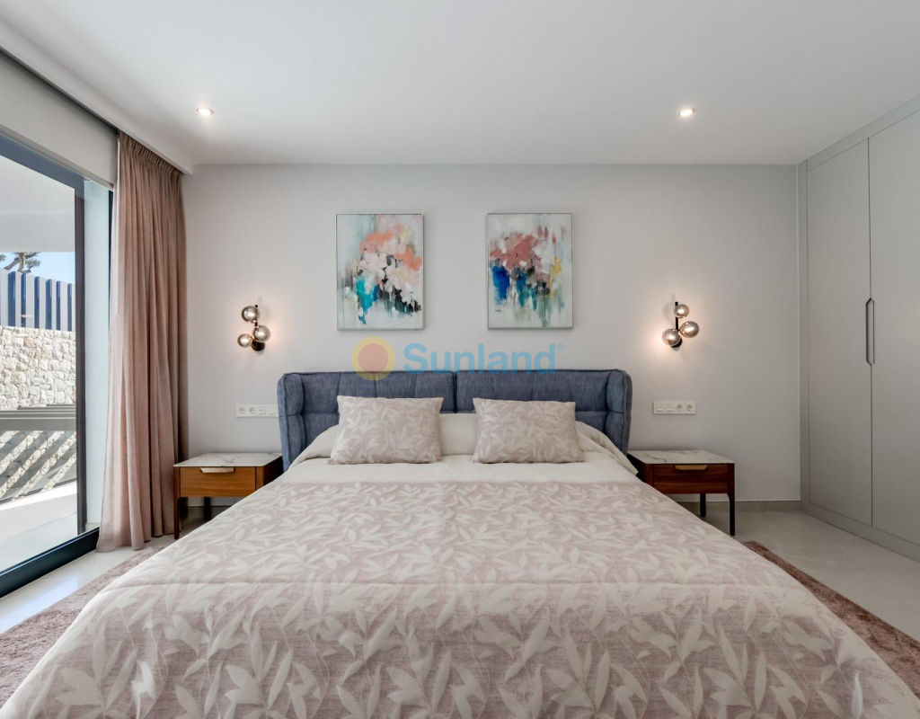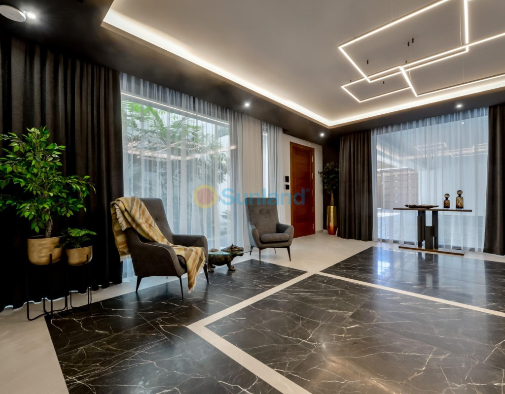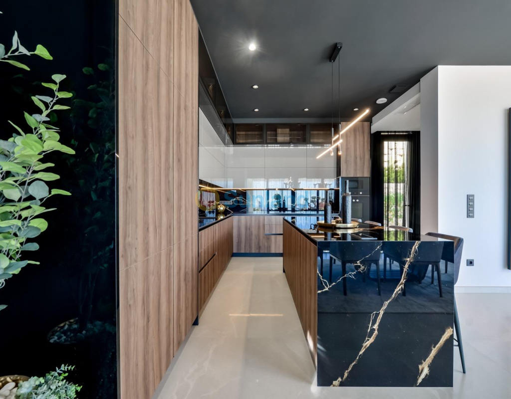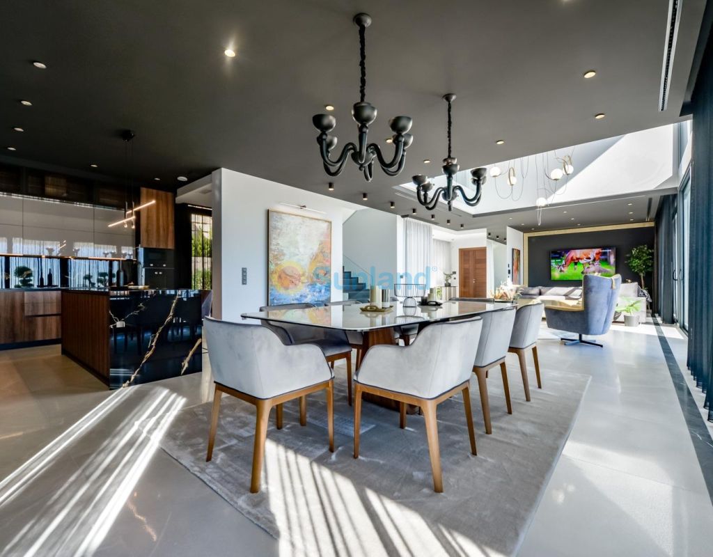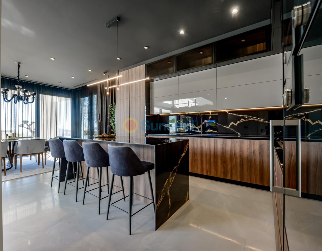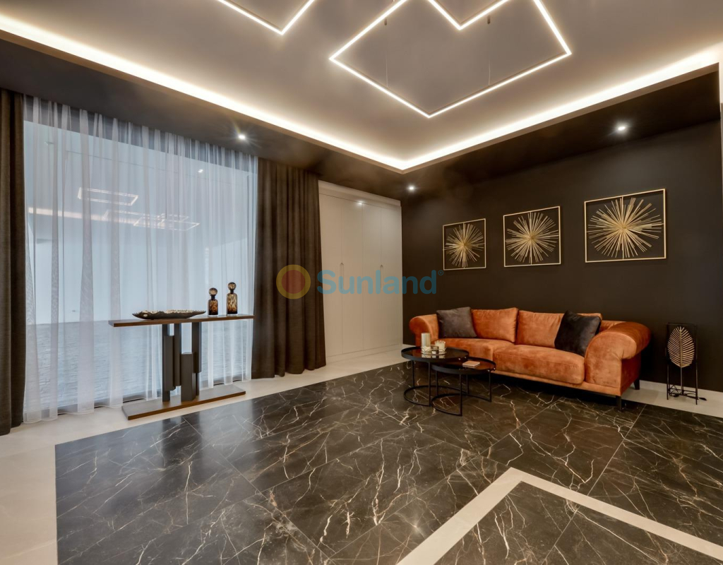 VILLA DE LUXE NEUVE A FINESTRAT AVEC VUE SUR LA MER Nouvelle construction d'une villa de luxe avec vue sur la mer à Sierra Cortina, Finestrat. En arrivant à l'urbanisation, il y a un mur en pierre naturelle d'une hauteur de 7 mètres et les portes d'accès automatiques à la villa qui arrivent au garage couvert au niveau de la rue avec double hauteur, lumière naturelle et jardin avec des palmiers de différentes hauteurs de 180 m2, une salle vitrée de 78 m2 avec ascenseur, escalier intérieur, vestiaire et assez d'espace pour mettre des fauteuils, convertir cet espace en un bureau ou simplement une salle d'attente pour les visiteurs. L'étage suivant de 190 m2 d'espace clos est situé au-dessous du niveau du terrain mais à 3 mètres au-dessus du niveau de la rue et bénéficie donc de la lumière naturelle. On peut y accéder par l'ascenseur ou l'escalier à l'intérieur de la villa, ou par l'escalier à l'extérieur du garage, dans ce dernier cas on ne peut accéder qu'aux couloirs extérieurs, à la salle des installations ou à la porte principale de cet étage, ce qui permet d'effectuer l'entretien de la maison sans avoir besoin d'entrer à l'intérieur de la maison. À l'intérieur de cet étage, on trouve 4 chambres spacieuses, un salon avec patio anglais de 17 m2 avec l'escalier menant au terrain, une buanderie, 2 salles de bain, des couloirs extérieurs de 40 m2 et une salle d'installations. Lorsque nous montons à l'étage principal par 3 voies d'accès, nous voyons un salon de 130 m2 avec double lumière, une cuisine ouverte, des toilettes invités, des vues panoramiques sur la mer, et une piscine de 54 m2 en stratifié, un beau jardin et 2 grandes terrasses couvertes. A l'étage des chambres on accède par ascenseur ou escalier intérieur où l'on trouve une chambre de maître de plus de 50 m2 avec salle de bain en-suite, dressing et terrasse, deux chambres d'environ 20 m2 chacune, une salle de bain et la terrasse pour ces chambres. La villa est équipée de Led à l'extérieur et à l'intérieur, chauffage au sol, domotique, cristaux Gamma élevés, climatisation centralisée, stores automatiques, hauts plafonds et bien plus encore : Salon - 95 m2 Chambres à coucher - 8 (principale 52 m2 et secondaire 20 m2) Salles de bains - 5 Terrain- 890 м2 Bâti- 998 м2 Piscine- 12 X 5 Quatre étages Jardin (20 m2) - entièrement aménagé avec système d'irrigation automatique Ascenseur (Otis) à l'intérieur de la maison Chauffage par le sol Domotique (contrôle de la climatisation, du chauffage au sol, de l'éclairage intérieur et extérieur, des stores) Stores électriques Lumières extérieures et intérieures de marque Siemens Hauts plafonds jusqu'à 3,20 m de hauteur Vue impressionnante sur la mer Un étage pour les invités Chauffage aérothermique Cuisine entièrement équipée avec îlot Armoires encastrées Sol en carreaux de porcelaine Mur en pierre naturelle sculptée à la main Garage pour 4 véhicules avec portes automatiques 160 m2 + hall d'entrée 78 m2 Parking ouvert 37 Villa située dans le complexe touristique Sierra Cortina, à proximité de deux terrains de golf, de parcs à thème, d'un grand centre commercial et à quelques minutes des plages de Benidorm. Finestrat est situé dans la région Marina Baixa de la Costa Blanca, à proximité de Benidorm et à environ 40 kilomètres de la ville d'Alicante et de l'aéroport international. Le village est situé sur le flanc de la montagne Puig Campana et offre de belles vues sur les montagnes, la côte et la mer Méditerranée.