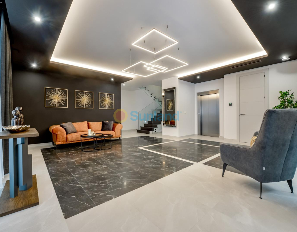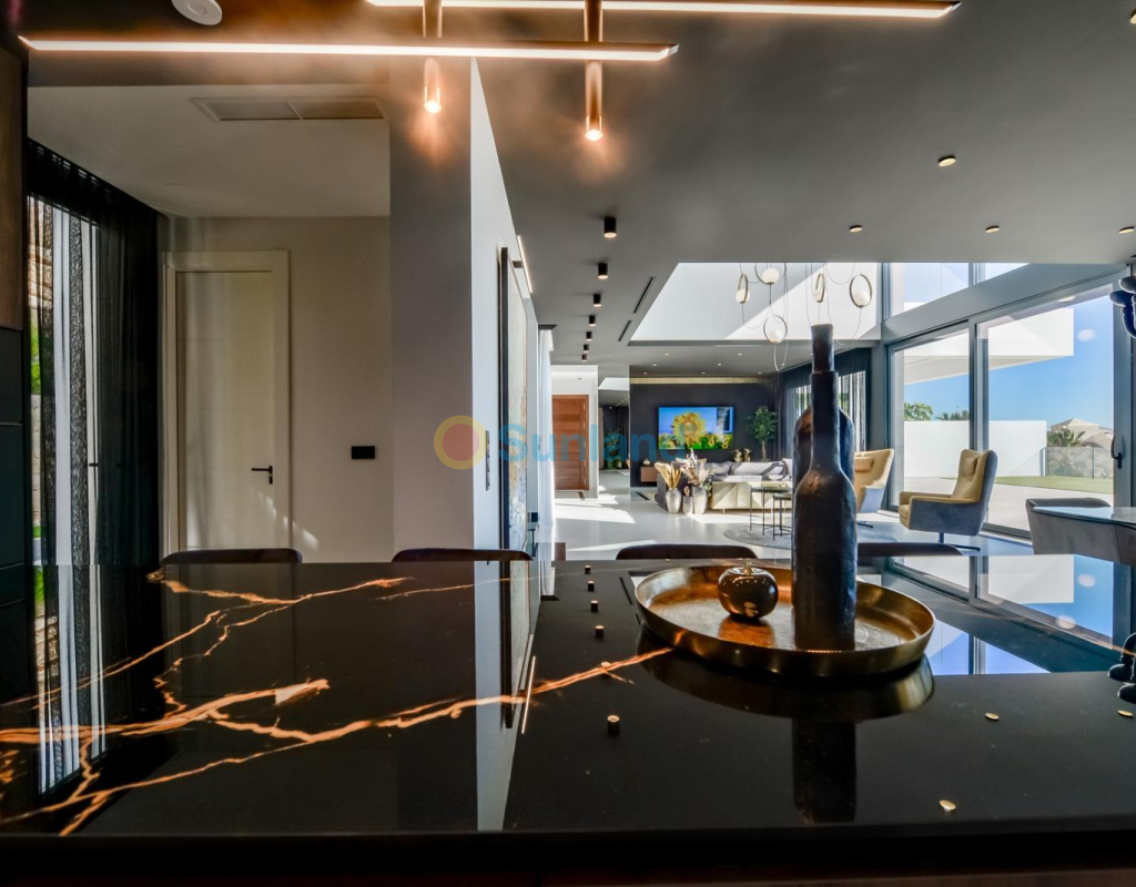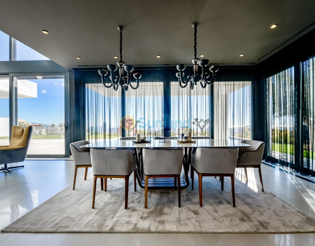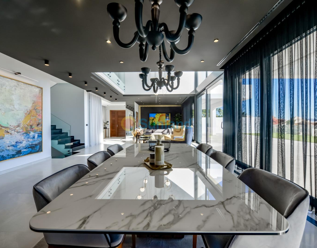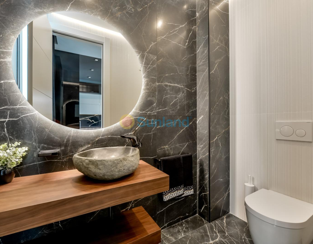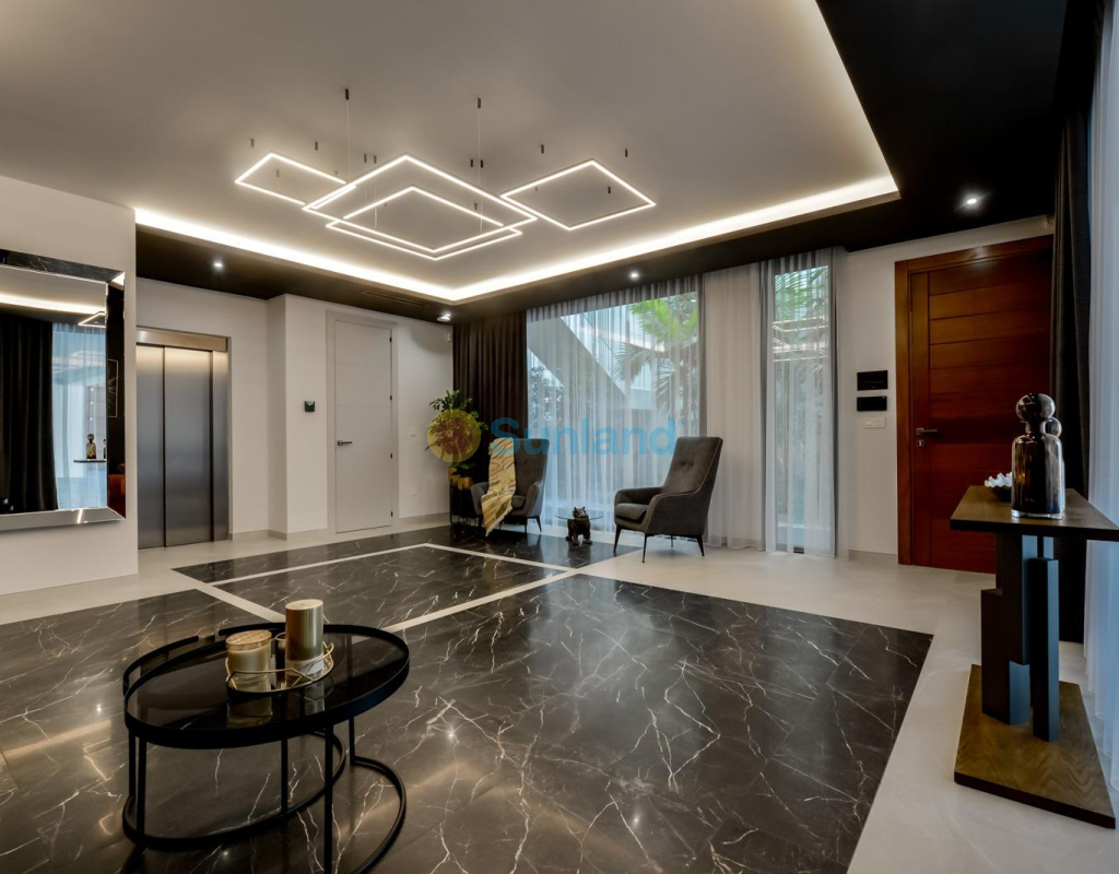 VILLA DE LUXE NEUVE A FINESTRAT AVEC VUE SUR LA MER Nouvelle construction d'une villa de luxe avec vue sur la mer à Sierra Cortina, Finestrat. En arrivant à l'urbanisation, il y a un mur en pierre naturelle d'une hauteur de 7 mètres et les portes d'accès automatiques à la villa qui arrivent au garage couvert au niveau de la rue avec double hauteur, lumière naturelle et jardin avec des palmiers de différentes hauteurs de 180 m2, une salle vitrée de 78 m2 avec ascenseur, escalier intérieur, vestiaire et assez d'espace pour mettre des fauteuils, convertir cet espace en un bureau ou simplement une salle d'attente pour les visiteurs. L'étage suivant de 190 m2 d'espace clos est situé au-dessous du niveau du terrain mais à 3 mètres au-dessus du niveau de la rue et bénéficie donc de la lumière naturelle. On peut y accéder par l'ascenseur ou l'escalier à l'intérieur de la villa, ou par l'escalier à l'extérieur du garage, dans ce dernier cas on ne peut accéder qu'aux couloirs extérieurs, à la salle des installations ou à la porte principale de cet étage, ce qui permet d'effectuer l'entretien de la maison sans avoir besoin d'entrer à l'intérieur de la maison. À l'intérieur de cet étage, on trouve 4 chambres spacieuses, un salon avec patio anglais de 17 m2 avec l'escalier menant au terrain, une buanderie, 2 salles de bain, des couloirs extérieurs de 40 m2 et une salle d'installations. Lorsque nous montons à l'étage principal par 3 voies d'accès, nous voyons un salon de 130 m2 avec double lumière, une cuisine ouverte, des toilettes invités, des vues panoramiques sur la mer, et une piscine de 54 m2 en stratifié, un beau jardin et 2 grandes terrasses couvertes. A l'étage des chambres on accède par ascenseur ou escalier intérieur où l'on trouve une chambre de maître de plus de 50 m2 avec salle de bain en-suite, dressing et terrasse, deux chambres d'environ 20 m2 chacune, une salle de bain et la terrasse pour ces chambres. La villa est équipée de Led à l'extérieur et à l'intérieur, chauffage au sol, domotique, cristaux Gamma élevés, climatisation centralisée, stores automatiques, hauts plafonds et bien plus encore : Salon - 95 m2 Chambres à coucher - 8 (principale 52 m2 et secondaire 20 m2) Salles de bains - 5 Terrain- 890 м2 Bâti- 998 м2 Piscine- 12 X 5 Quatre étages Jardin (20 m2) - entièrement aménagé avec système d'irrigation automatique Ascenseur (Otis) à l'intérieur de la maison Chauffage par le sol Domotique (contrôle de la climatisation, du chauffage au sol, de l'éclairage intérieur et extérieur, des stores) Stores électriques Lumières extérieures et intérieures de marque Siemens Hauts plafonds jusqu'à 3,20 m de hauteur Vue impressionnante sur la mer Un étage pour les invités Chauffage aérothermique Cuisine entièrement équipée avec îlot Armoires encastrées Sol en carreaux de porcelaine Mur en pierre naturelle sculptée à la main Garage pour 4 véhicules avec portes automatiques 160 m2 + hall d'entrée 78 m2 Parking ouvert 37 Villa située dans le complexe touristique Sierra Cortina, à proximité de deux terrains de golf, de parcs à thème, d'un grand centre commercial et à quelques minutes des plages de Benidorm. Finestrat est situé dans la région Marina Baixa de la Costa Blanca, à proximité de Benidorm et à environ 40 kilomètres de la ville d'Alicante et de l'aéroport international. Le village est situé sur le flanc de la montagne Puig Campana et offre de belles vues sur les montagnes, la côte et la mer Méditerranée.