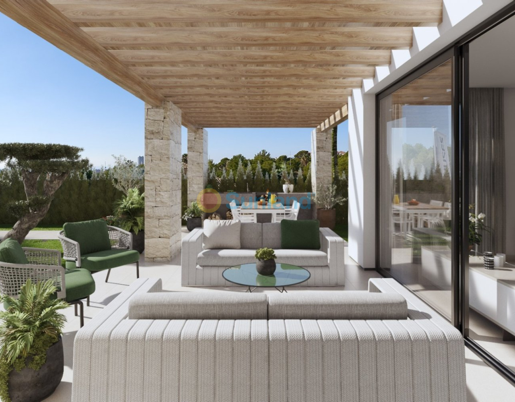 VILLAS DE NOUVELLE CONSTRUCTION À FINESTRAT Nouvelle construction résidentielle de villas modernes située à Sierra Cortina, Finestrat. Villas de style moderne avec 3 chambres, 3 salles de bains, cuisine ouverte, grand salon avec accès à la terrasse, jardin privé avec piscine et parking. Les villas ont une grande terrasse avec vue sur la mer et les montagnes. Résidentiel situé à 5 min en voiture de tous les services que Benidorm peut offrir et dans un environnement avec une température annuelle moyenne de 20ºC et 300 jours de soleil par an, 44 km de l'aéroport d'Alicante, 3 km de la mer et 200 mètres du golf.