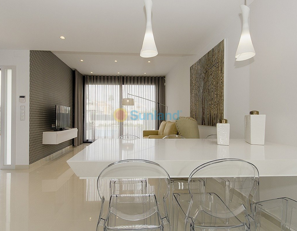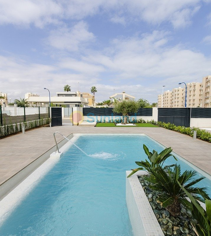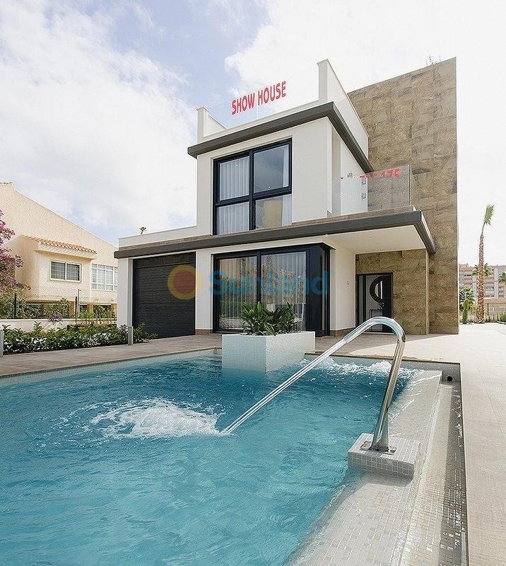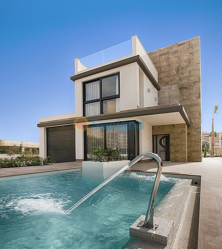 VILLA NEUVE À PLAYA HONDA Villa avec sous-sol, garage, piscine privée et solarium, entièrement finie et prête à emménager. Situé sur un terrain de plus de 400 m2 et à 1 km de la plage de Mar Menor à Playa Honda, avec tous les services autour. A proximité du célèbre golf de La Manga et du parc naturel de Calblanque.