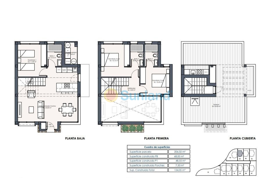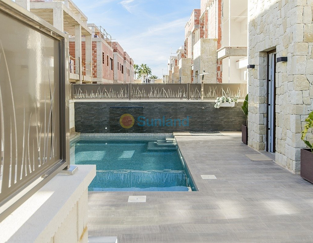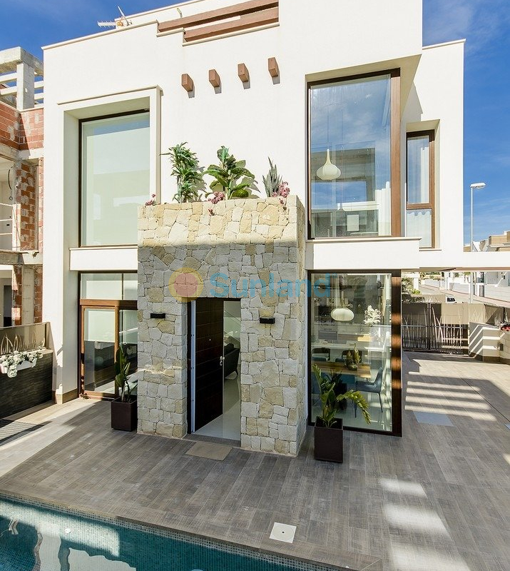 NOUVELLE CONSTRUCTION RÉSIDENTIELLE DE VILLAS À LOS MONTESINOS Nouvelle construction de villas avec 3 chambres à coucher et 3 salles de bain, cuisine ouverte sur le salon-salle à manger. Toutes les villas ont une terrasse, une piscine privée, un jardin privé et une allée. Des sous-sols sont également disponibles moyennant un coût supplémentaire. Elles sont toutes construites avec des matériaux de haute qualité et des technologies avancées pour le confort et la commodité de nos clients. La ville typique de Los Montesinos est stratégiquement située à 10 minutes en voiture des plages et des loisirs de Torrevieja (avec tous les services d'une grande ville : théâtre, 2 hôpitaux, écoles internationales, etc.), de plusieurs terrains de golf et avec un accès facile à l'autoroute A7 pour rejoindre l'aéroport d'Alicante en 20 min. Dans l'urbanisation il y a des supermarchés et des bars pour le service quotidien, étant un environnement rural et tranquille. Le climat de cette zone garantit 300 jours de soleil par an avec une température moyenne de 20ºC, ce qui, avec la riche gastronomie et les activités culturelles et sportives disponibles dans ses environs, fait de cette zone un endroit idéal pour établir une résidence secondaire pour les vacances ou un endroit tranquille pour vivre en permanence.