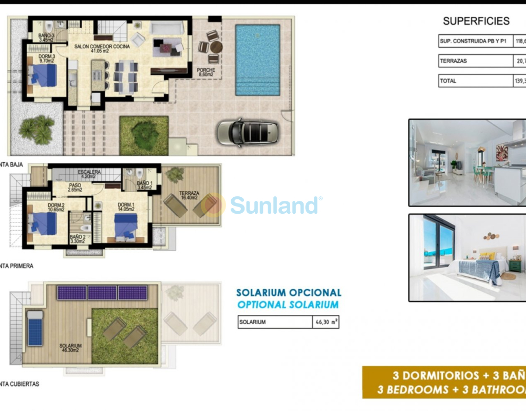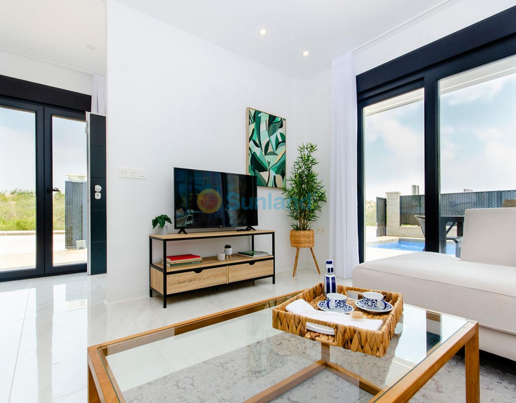 VILLAS NEUVES DANS LE COMPLEXE DE GOLF DE VISTABELLA Nouvelles villas de luxe construites sur deux étages, situées dans le complexe de golf de Vistabella, entre San Miguel et Los Montesinos, sur la Costa Orihuela. Villas avec 3 chambres à coucher, 3 salles de bains, une salle de séjour ouverte avec la cuisine, un jardin privé avec la piscine et un espace de stationnement. En option, vous pouvez avoir un solarium privé à un coût supplémentaire. Au Vistabella Golf, il y a de la place pour tout le monde. Le parcours est conçu pour que chaque joueur puisse en profiter du début à la fin. Ses rues ondulées, ses bunkers stratégiques ou ses lacs sont quelques-unes des caractéristiques qui en font l'un des designs les plus attrayants de la région, où chaque coup est un défi et un plaisir pour les sens. Les 18 trous du Vistabella Golf, par 72 et d'une longueur de plus de 6 000 mètres ont été conçus selon les directives des terrains modernes avec 4 tees de grande amplitude dans chaque trou, de larges fairways et des bunkers surélevés. Le club house et le restaurant du Vistabella Golf ainsi que les bars et les magasins locaux sont à 5 minutes de marche. La ville animée de San Miguel de Salinas et de Los Montesinos est à 5 minutes en voiture et les belles plages de Guardamar sont à 15 minutes en voiture. L'aéroport d'Alicante est à 35 minutes et le nouvel aéroport de Corvera Murcia est à 45 minutes.