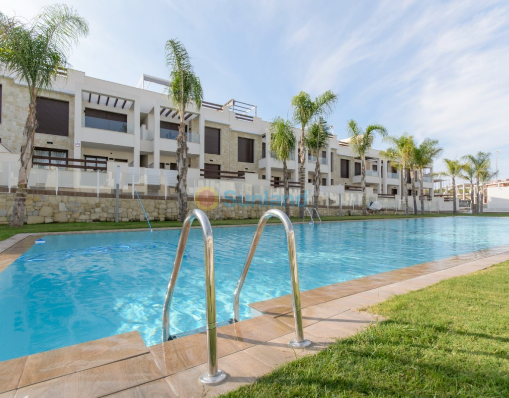 NOUVELLE CONSTRUCTION RÉSIDENTIELLE D'APPARTEMENTS DE PLAIN-PIED À LOS BALCONES, TORREVIEJA Nouvelle construction d'un complexe résidentiel avec de magnifiques vues sur le lac salé rose à Los Balcones. Le complexe se compose de 104 appartements de plain-pied avec 2 et 3 chambres, les bungalows du dernier étage ont des solariums privés avec des vues panoramiques sur le lac salé et les bungalows du rez-de-chaussée ont de grandes terrasses donnant sur la zone verte. Ces bungalows partagent de magnifiques espaces verts et deux grandes piscines. Un parking souterrain et des espaces de rangement sont disponibles en option. Cette résidence offre un design moderne, des matériaux sélectionnés, des appartements finis selon les spécifications les plus élevées en utilisant uniquement des matériaux de première qualité. La résidence sera construite à flanc de colline, de sorte que la vue et l'air sont clairs et de qualité unique. Los Balcones est situé juste à l'extérieur de Torrevieja avec tous les services accessibles, à seulement 5 minutes de Playa de Los Náufragos, des supermarchés, de l'école et du centre commercial La Zenia Boulevard, et à une minute de l'hôpital universitaire de Torrevieja. En outre, vous trouverez 4 terrains de golf à proximité, dont le club primé Las Colinas Golf & Country Club. Le complexe est situé à 40 minutes de l'aéroport d'Alicante et à 1 heure de l'aéroport de Murcia - Corvera.