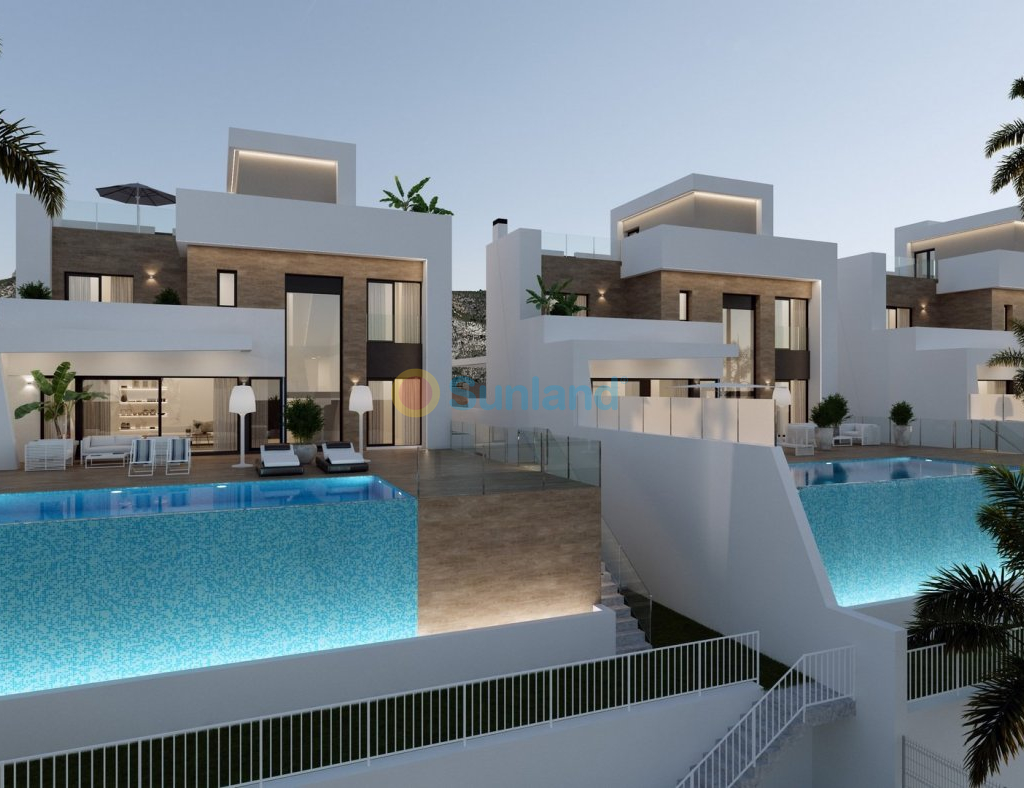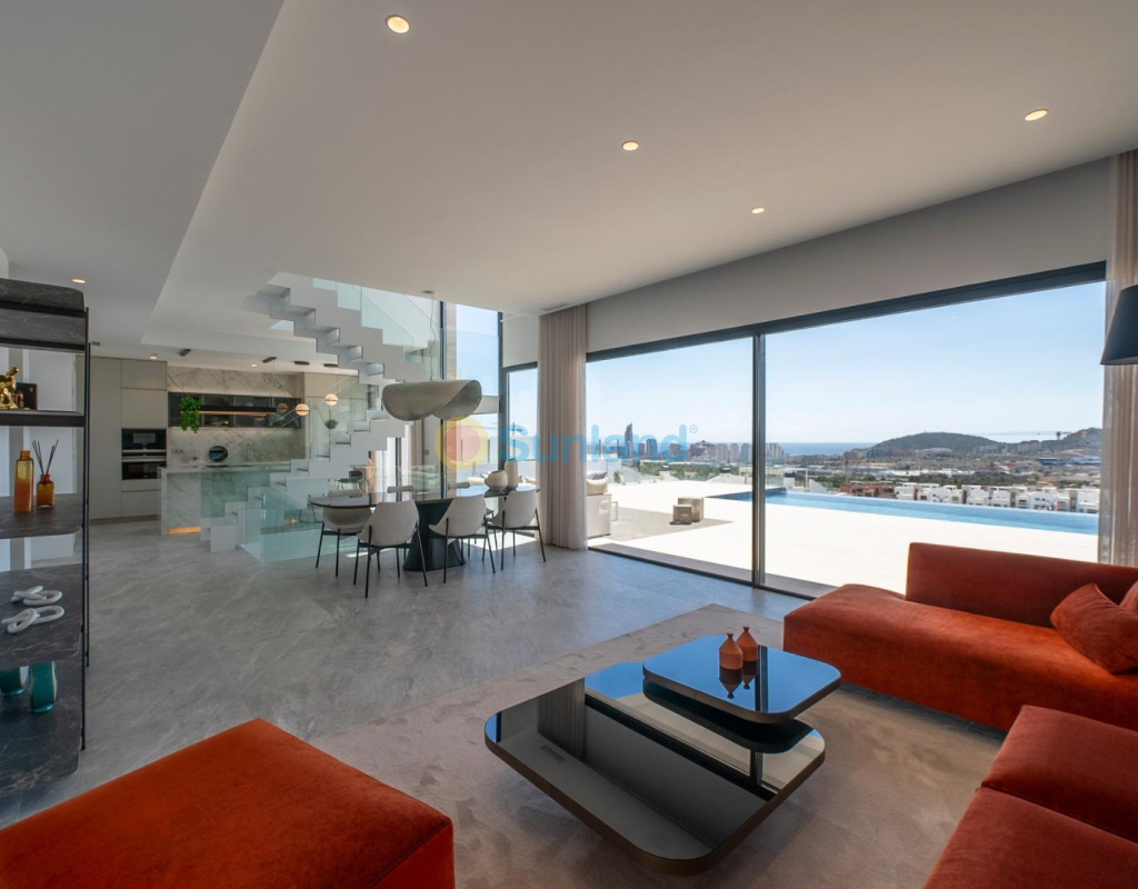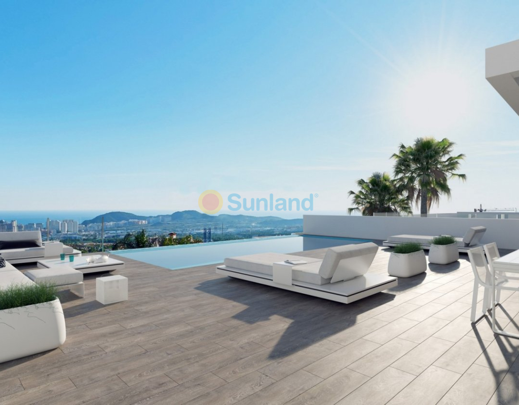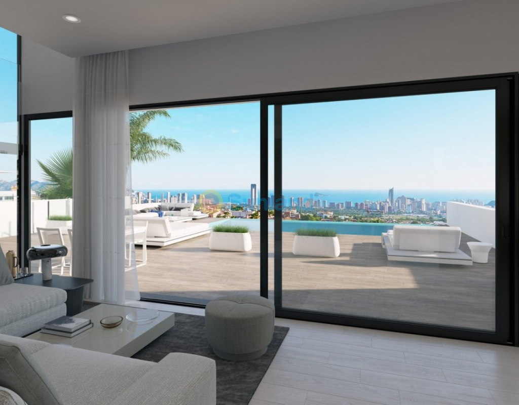VILLAS DE LUXE NEUVE A FINESTRAT AVEC VUE MER Villas de luxe situées dans un complexe résidentiel de nouvelle construction à Finestrat. Ces villas se composent de deux étages, d'un solarium, d'un sous-sol et d'un jardin intérieur avec piscine privée. Chaque villa a son propre ascenseur. Le solarium offre une vue large et inoubliable sur Benidorm et la mer. Ces villas sont uniques par leur conception et leurs équipements : un grand salon, de grandes chambres en suite au premier étage, un solarium pour se détendre et profiter des couchers de soleil, une piscine contemporaine à débordement et une grande terrasse pour les vacances et la détente. Résidentiel situé à 5 min en voiture de tous les services que Benidorm peut offrir et dans un environnement avec une température annuelle moyenne de 20ºC et 300 jours de soleil par an, à 44 km de l'aéroport d'Alicante, à 3 km de la mer et à 200 mètres de la le golf.