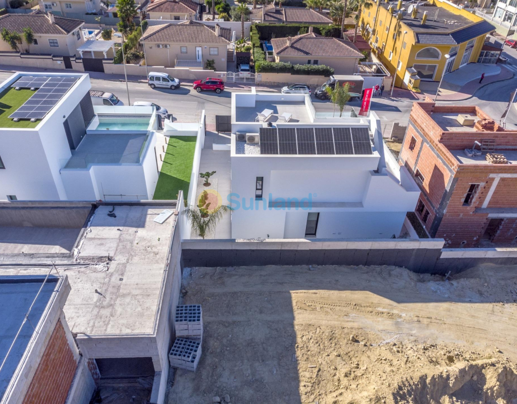 VILLAS NEUVES À ROJALES Nouvelle construction exclusive de villas à Rojales. Magnifiques villas construites sur 2 étages avec 3 chambres, 3 salles de bains, cuisine ouverte avec coin salon et terrasse. Les villas sont construites sur des parcelles indépendantes où vous disposez d'un jardin avec piscine privée et d'une place de parking. Possibilité de solarium moyennant un supplément. Il y a 3 terrains de golf à proximité et les plages sont à 10 minutes en voiture. Rojales est un charmant village avec tous les services tels que supermarchés, pharmacies, banques, restaurants et parc naturel situés très près des villas. Il y a plusieurs terrains de golf à proximité, ainsi que des parcs aquatiques à Rojales et Torrevieja. Les aéroports d'Alicante et de Murcie sont à 45 minutes en voiture.