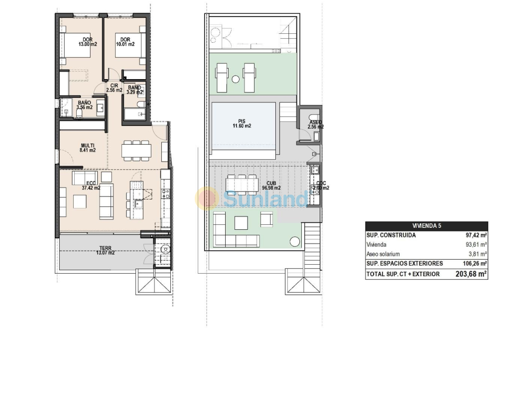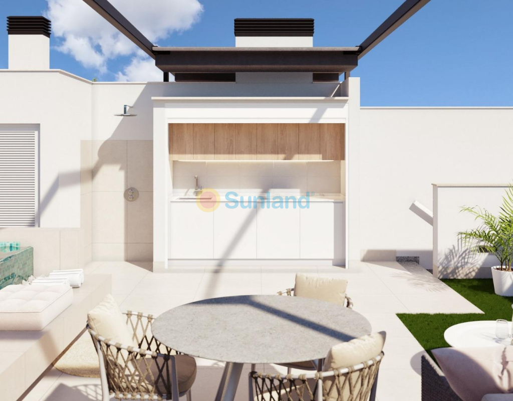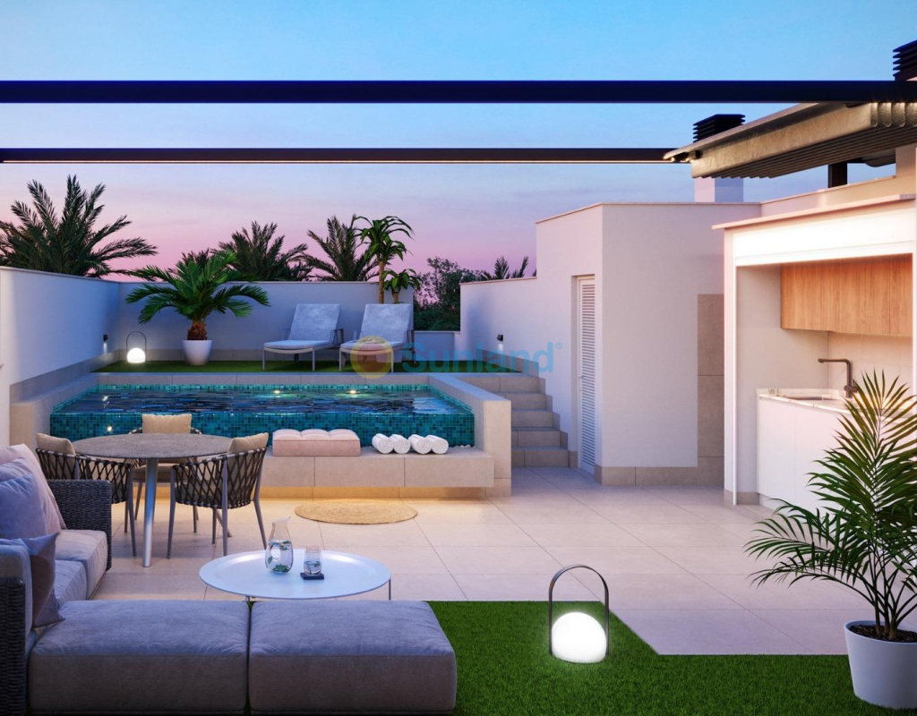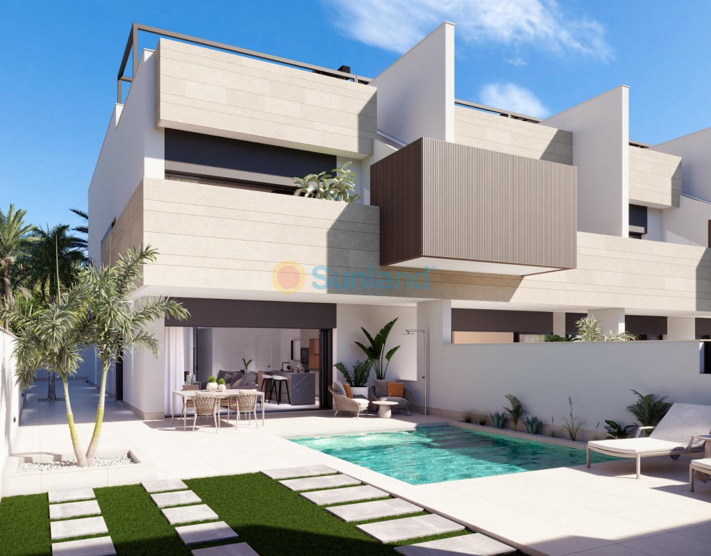 Boutique-project met nieuwbouwwoningen met privézwembad in Pilar de la Horadada Exclusieve woonwijk op een toplocatie aan de Costa Blanca Ontdek dit boutique-project met slechts 10 exclusieve nieuwbouwwoningen in Pilar de la Horadada, een charmant kustplaatsje in het zuiden van de Costa Blanca. Dit moderne project ligt aan de rand van de stad en biedt een vrij uitzicht op groene parken, terwijl het slechts 2 km van de mediterrane stranden van Torre de la Horadada ligt. Geniet van het gemak van alle essentiële voorzieningen op loopafstand, waaronder supermarkten, restaurants, banken, scholen en gezondheidsdiensten. Keuze uit verschillende indelingen met privé buitenruimtes Dit nieuwe project biedt een verscheidenheid aan indelingen met 2 en 3 slaapkamers om aan verschillende behoeften en levensstijlen te voldoen: Huizen op de begane grond hebben een privétuin, een zwembad met strandgedeelte en een volledig aangelegde tuin met automatische irrigatie. Huizen op de bovenste verdieping beschikken over een privésolarium met zomerkeuken, pergola, buitentoilet en privézwembad met ingebouwde jacuzzi, plus een speciale fietsenstalling op de begane grond. Halfvrijstaande villa's bieden royale binnen- en buitenruimte met een privétuin en zwembad, ideaal voor gezinnen of een lang verblijf. Alle woningen hebben een eigen parkeerplaats. Premium voorzieningen en hoogwaardige afwerking Alle woningen zijn ontworpen met het oog op comfort, efficiëntie en stijl en zijn voorzien van: Volledig geïnstalleerde airconditioning Elektrische rolluiken en versterkte voordeuren LED-verlichting voor binnen en buiten Ingerichte keukens met apparatuur van BOSCH of SIEMENS Stijlvolle badkamers met vloerverwarming, spiegels, wastafels en douchewanden Modern ontwerp dat natuurlijk licht en functionaliteit maximaliseert Deze doordachte woningen bieden een naadloze combinatie van binnencomfort en buitenleven, perfect om het hele jaar door te genieten van het warme mediterrane klimaat. Belangrijkste afstanden: Stranden: 2 km Golfbaan Lo Romero: 6 km Winkelcentrum Dos Mares (San Javier): 10 km Winkelcentrum Zenia Boulevard (Orihuela Costa): 12 km Internationale luchthaven Murcia: 40 km Luchthaven Alicante: 70 km Ideaal om te wonen of als investering Met een beperkte beschikbaarheid en een bevoorrechte ligging is dit nieuwe project in Pilar de la Horadada een fantastische kans voor zowel permanente bewoning als investering. Of u nu op zoek bent naar een vakantiehuis, een plek om van uw pensioen te genieten of een huurwoning, deze moderne woningen bieden alles wat u nodig heeft. Neem vandaag nog contact met ons op om uw nieuwe woning aan de Costa Blanca te bemachtigen.