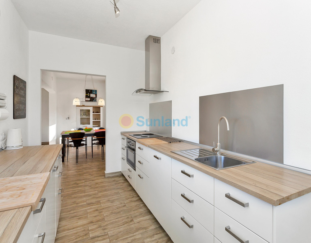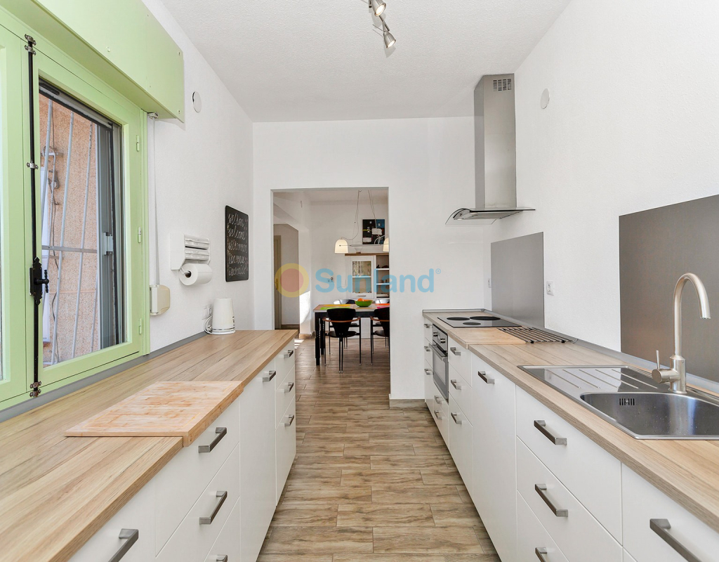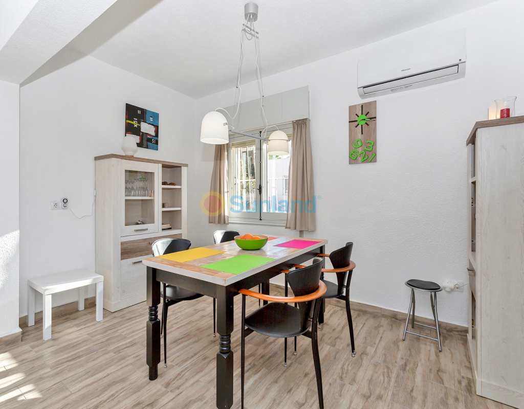 We bieden een prachtige en ruime villa op een perceel van 800m2 aan die zorgvuldig gerenoveerd werd en een modern design heeft met een ruime leefruimte en open keuken met alle faciliteiten en ook een bijkeuken. De villa heeft 2 slaapkamers, een moderne badkamer met inloopdouche, een veranda aan de woonkamer met enerzijds een open uitzicht en anderzijds een directe toegang tot ruime terrassen. Er is bovendien ook een garage met berging en veel stockageruimte en een extra toilet. Er is voldoende ruimte om een gastenappartement te maken. Deze villa in de urbanisatie Los Balcones is perfect gelegen en ligt op slechts 5 minuten rijden van de centrale stranden van Torrevieja (Playa del Cura, Playa El Acequión en Playa de los Naúfragos) en is vlakbij een ruim aanbod van bars, restaurants, winkels en supermarkten. Bovendien zijn er gemakkelijke verbindingen naar de luchthavens van Alicante en Murcia, met de auto respectievelijk 40 of 50 minuten rijden. Deze woning wordt gemeubileerd verkocht en is instapklaar. Mis deze kans niet, deze ruime villa heeft alles wat je nodig hebt voor een vakantiehuis, een winterverblijf of een investering in een woning dichtbij zee.