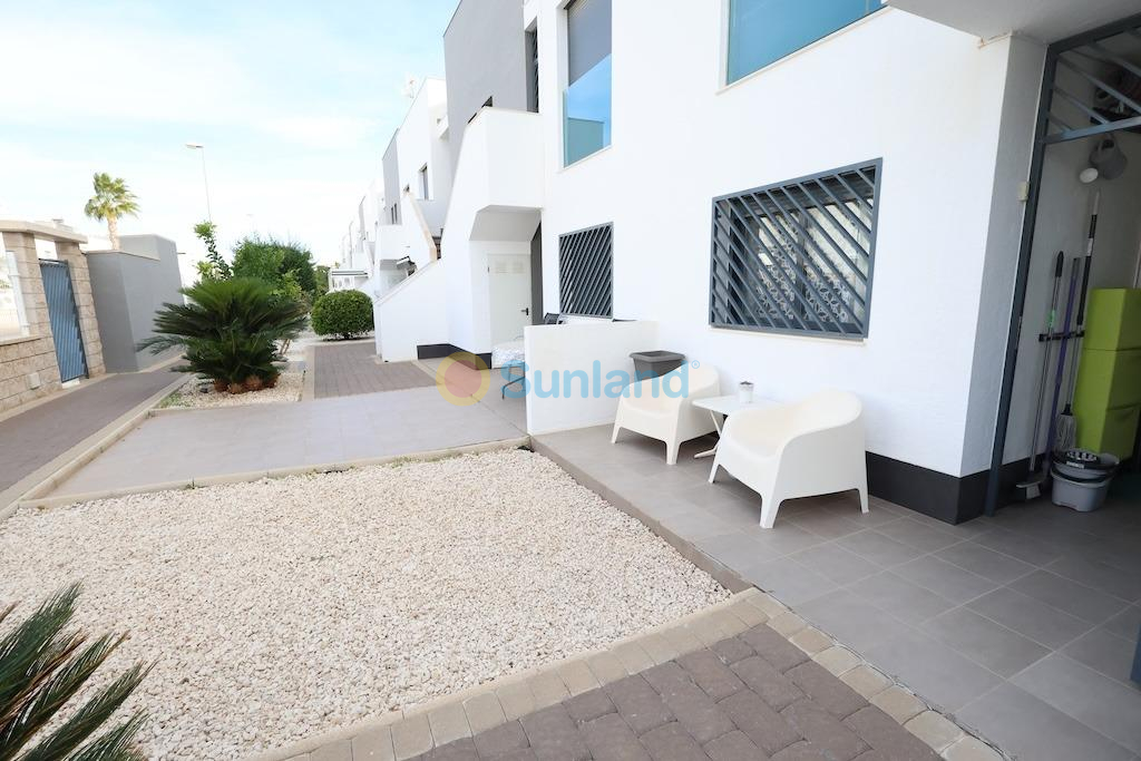 La Zenia, Residential Oasis Beach II. Prachtige bungalow op de begane grond met zuidoostelijke oriëntatie, 70 m2 woonoppervlak en een stijlvolle glazen terras van 13,50 m2. De woning beschikt over 2 slaapkamers, waarvan één een luxe en-suite, 2 badkamers en een open keuken die naadloos aansluit op de woonkamer.. . De woning wordt volledig gemeubileerd verkocht, inclusief kanaalairconditioning, en is voorzien van een eigen ondergrondse parkeerplaats.. Het complex biedt uitgestrekte aangelegde tuinen, een schitterend zwembad, een kinderspeelplaats en nog veel meer — een ideale omgeving om volop te genieten van de mediterrane levensstijl.