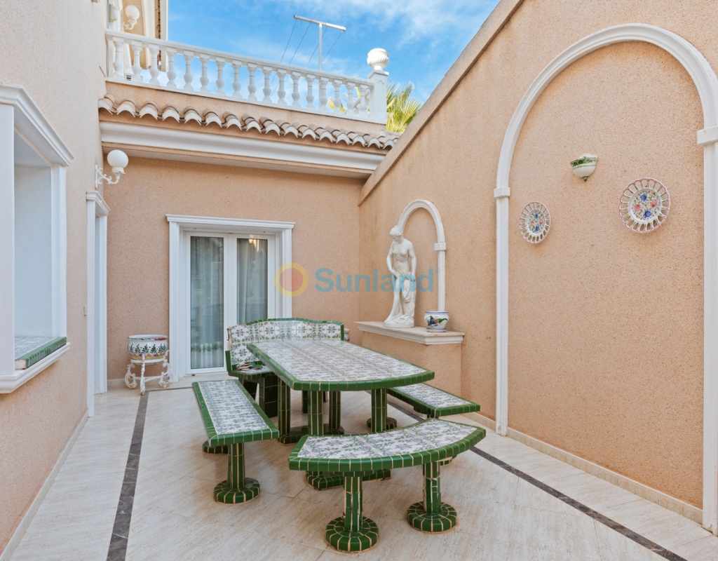 Indrukwekkende luxe villa in Doña Pepa: een exclusief toevluchtsoord vol comfort en stijl Gelegen in de prestigieuze wijk Doña Pepa, in Ciudad Quesada, is deze elegante villa het toonbeeld van luxe en comfort. Met een architectonisch ontwerp van topklasse en aandacht voor elk detail is deze woning de ideale plek voor wie op zoek is naar een exclusieve levensstijl in een rustige en verfijnde omgeving. Deze woning, gebouwd in 1996, heeft een totale bebouwde oppervlakte van 344 m² en een bruikbare oppervlakte van 292 m², allemaal gelegen op een perceel van 1.330 m². Met 6 kamers, waarvan 5 slaapkamers, en 4 badkamers, is de villa verdeeld over drie verdiepingen, waardoor een perfecte scheiding ontstaat tussen sociale, privé- en recreatieruimtes. Bij binnenkomst op de begane grond verwelkomt de villa u met een lichte en ruime woonkamer die in verbinding staat met de eetkamer en de keuken, wat een gastvrije en ruime sfeer creëert. De keuken is modern en functioneel, perfect om te genieten van culinaire momenten met familie of vrienden. De keuken heeft een deur naar een klein terras. Op de bovenverdieping vindt u de slaapkamers, allemaal ruim van formaat en voorzien van inbouwkasten. De master suite is een waar pareltje, met twee privéterrassen met een spectaculair uitzicht en een exclusieve ruimte om te ontspannen. Daarnaast beschikt deze kamer over een elegant ontworpen en-suite badkamer met zowel een bad als een douche, voor maximaal comfort en functionaliteit. Op de benedenverdieping bevindt zich een eigen wijnkelder, een unieke ruimte voor liefhebbers, met een warme en gezellige sfeer. De omgeving van de villa is een van de grootste troeven. De woning beschikt over een uitgestrekte privétuin rondom de woning, die een gevoel van rust en privacy creëert. Het privézwembad, compleet met een geïntegreerde jacuzzi, is de perfecte plek om te genieten van zonnige dagen. Aan elk detail is gedacht voor uw comfort: automatische rolluiken voor volledige lichtregeling, PVC-ramen voor perfecte isolatie, zonnepanelen die het energieverbruik optimaliseren en een privégarage voor uw veiligheid en gemak. Naast de uitzonderlijke kenmerken heeft deze villa een bijzondere geschiedenis. De villa is ontworpen door een familielid, wat het een uniek en persoonlijk karakter geeft. Dit maakt deze woning veel meer dan zomaar een huis. Elk hoekje is zorgvuldig en met zorg ontworpen, waardoor er een gevoel van thuis ontstaat. Doña Pepa, gelegen in een van de meest exclusieve wijken van Ciudad Quesada, is een bevoorrechte wijk die bekend staat om de rust, de nabijheid van de natuur en tegelijkertijd de nabijheid van essentiële voorzieningen, restaurants en recreatiegebieden. De villa is perfect verbonden met andere interessante gebieden, waardoor het een ideale keuze is voor wie wil genieten van rust en comfort zonder ver verwijderd te zijn van wat hij nodig heeft. Bent u op zoek naar een villa die elegantie, comfort, ruimte en een bevoorrechte locatie combineert? Dan is deze woning het antwoord op uw dromen. Een pareltje met een uniek en exclusief ontwerp dat een ongeëvenaarde levensstijl biedt in een van de meest gewilde gebieden van de Costa Blanca. Mis de kans niet om in deze spectaculaire villa in Doña Pepa te wonen!