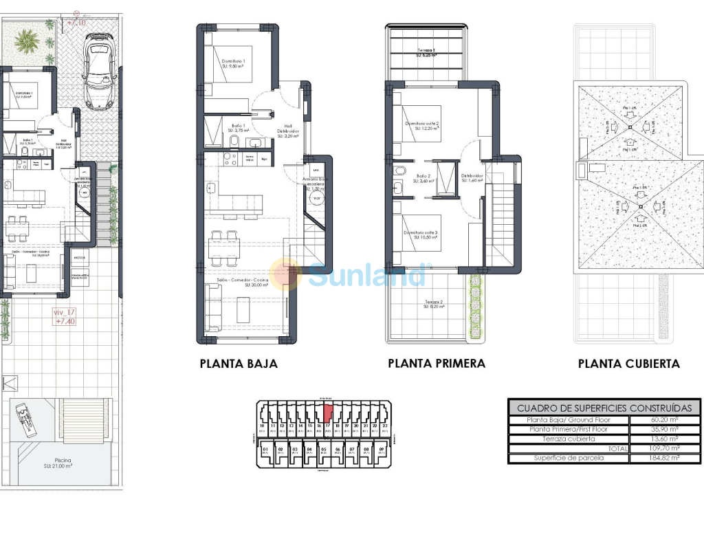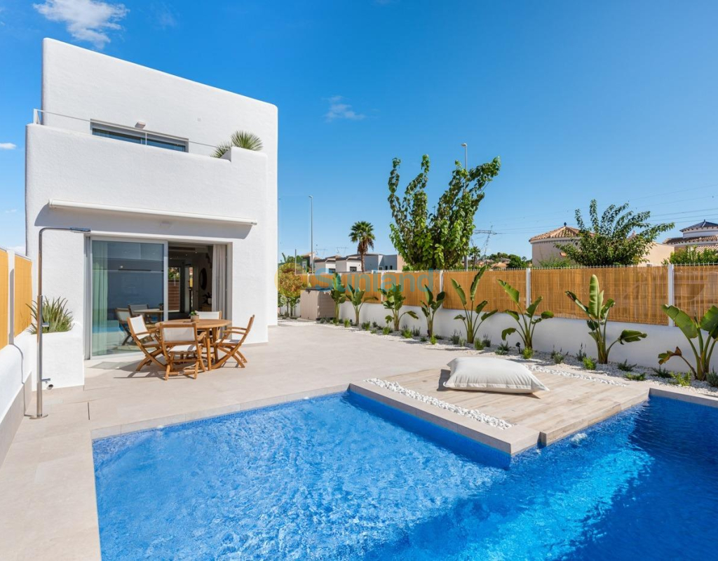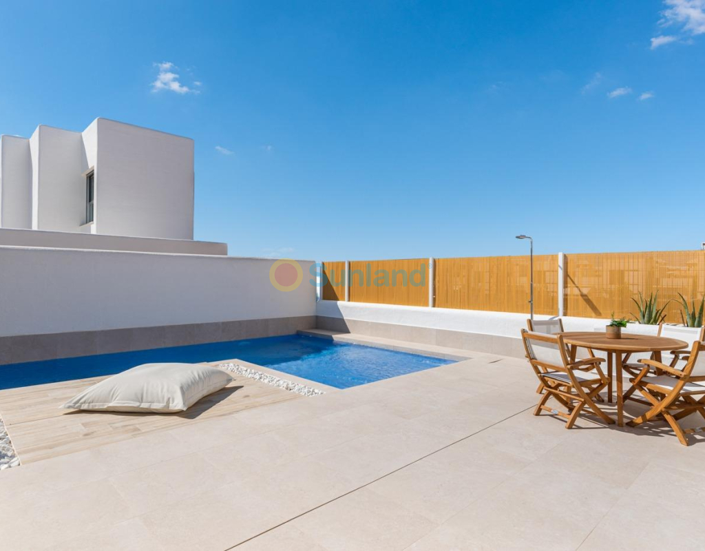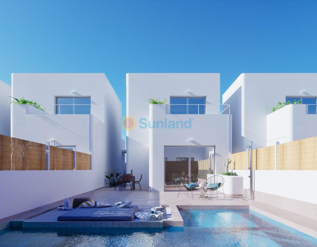 НОВЫЕ ВИЛЛЫ В ИБИЦЕНСКОМ СТИЛЕ В ЛОС-АЛЬКАСАРЕСЕ Двухэтажные виллы в стиле Ибицы, 3 спальни, 2 ванные комнаты, гостиная, кухня, терраса, парковка и частный бассейн. За дополнительную плату возможна установка частного солярия. Тщательно спроектированное жилье с использованием высококачественных материалов удовлетворит запросы самых взыскательных клиентов. Виллы расположены в 1 км от пляжа и города Лос Алькасарес, где можно заниматься различными водными видами спорта, в окружении нескольких полей для гольфа. Город Картахена находится менее чем в 15 минутах езды на автомобиле и в 30 минутах езды от аэропорта Мурсия-Корвера.