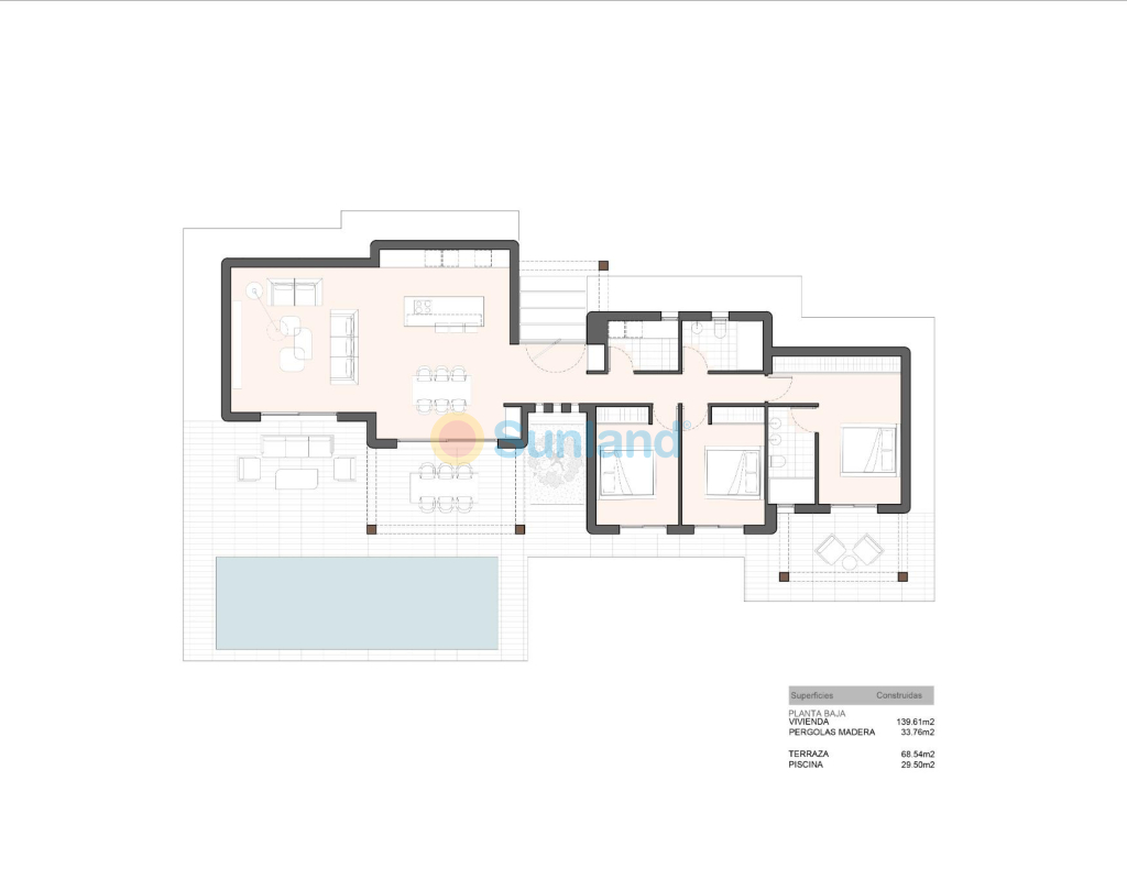 Виллы в средиземноморском стиле в Ла Фустера, Бенисса Коста Эксклюзивные новые виллы в северной части Коста-Бланки Откройте для себя исключительную возможность стать владельцем одного из всего четырех односемейных домов в престижном районе Ла Фустера, Бенисса Коста. Эти недавно построенные виллы идеально сочетают в себе ибисанский стиль и средиземноморскую элегантность, предлагая спокойный образ жизни всего в 1 км от пляжа Ла Фустера и в нескольких минутах езды от Кальпе, Морайры и Бениссы. Одноуровневая жизнь на просторных участках Каждая вилла спроектирована для комфорта и удобства: 3 спальни и 2 ванные комнаты на одном уровне Жилая площадь 139,61 м² с открытой планировкой Частные участки площадью более 800 м², обеспечивающие простор для отдыха Большие террасы (68.54 м²) с тенистыми беседками Частный бассейн (29,50 м²) идеально подходит для солнечных дней Дома расположены таким образом, чтобы обеспечить уединение и спокойствие, в окружении пышной растительности, создающей настоящий средиземноморский отдых. Архитектура, вдохновленная Ибицей Чистые линии, кубические объемы и использование натуральных материалов, таких как дерево и камень, отражают спокойный и утонченный характер Ибицы. Каждый элемент был разработан таким образом, чтобы гармонично вписаться в окружающую среду, создавая теплую и неподвластную времени атмосферу как внутри, так и снаружи. Комфорт и энергоэффективность Виллы построены по самым высоким стандартам, с использованием энергосберегающих технологий строительства и качественной отделки. Просторные и светлые интерьеры плавно переходят в наружные террасы, позволяя вам наслаждаться средиземноморским климатом круглый год. Стратегическое расположение рядом со всеми необходимыми объектами Расположенный в жилом районе с низкой плотностью населения, этот комплекс предлагает идеальный баланс между природой и доступностью. Поблизости находятся такие достопримечательности, как: Пляж Ла Фустера - 1 км Центры городов Кальпе, Морайра и Бенисса - 8-10 км. Гольф-клуб Ифач - 7 км Марина Морайры - 8 км Аэропорт Аликанте - 84 км Торговый центр Ла Марина (Ондара) - 35 км Ваш идеальный дом в Средиземноморье ждет вас Если вы ищете дом для постоянного проживания, отдыха или инвестиций, эти виллы в Ла Фустера предлагают непревзойденное сочетание местоположения, качества и дизайна. Свяжитесь с нами сегодня, чтобы узнать больше или организовать просмотр этого эксклюзивного комплекса.