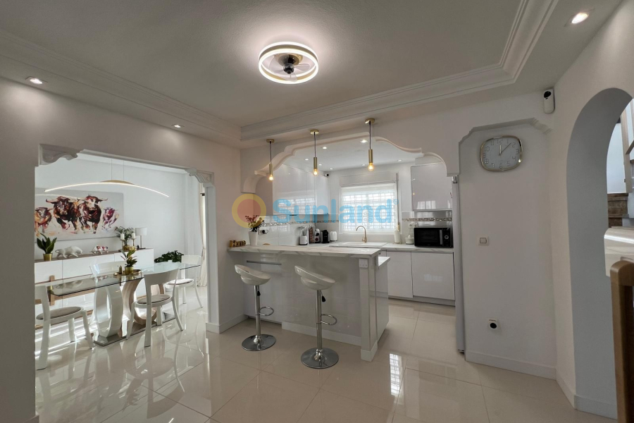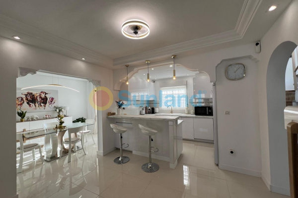 Предлагаем вашему вниманию великолепную трёхэтажную виллу, полностью обновлённую с использованием высококачественных материалов, расположенную в тихом и безопасном жилом комплексе. Всего в 1,5 км от магазинов и с быстрым доступом к автомагистрали, этот дом идеально подойдёт для комфортной жизни с высоким уровнем удобства.