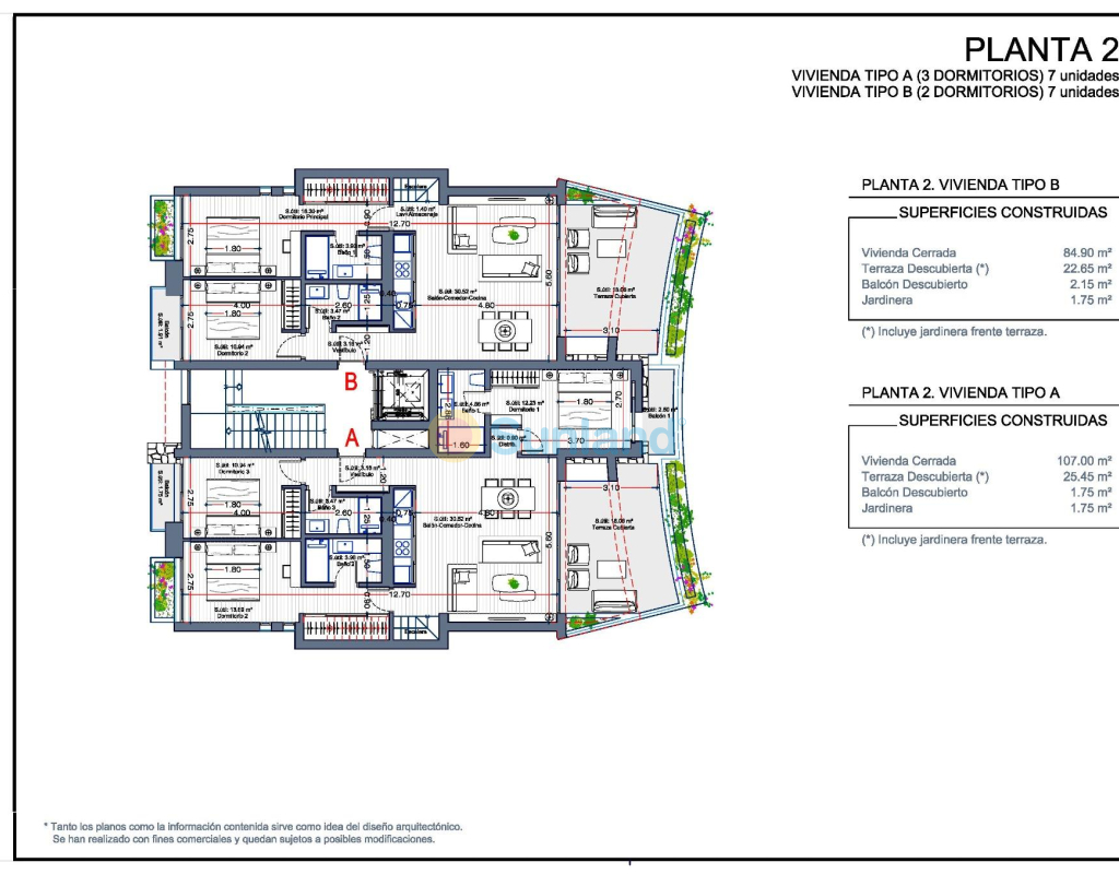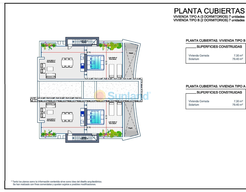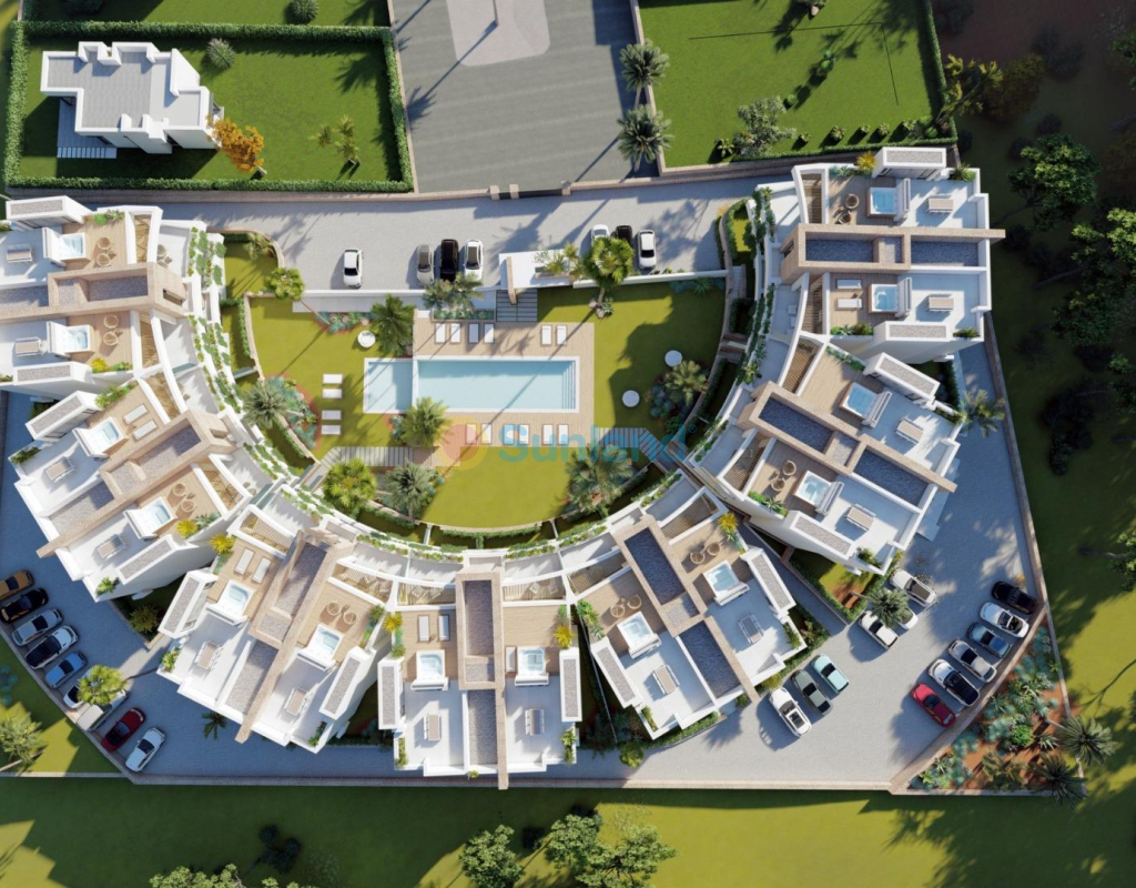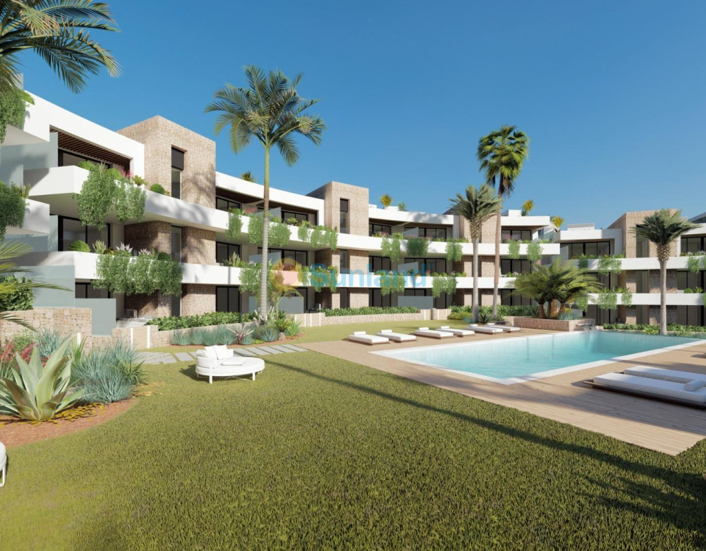 НОВЫЙ ЖИЛОЙ КОМПЛЕКС НА КУРОРТЕ ЛА МАНГА КЛАБ Новый эксклюзивный жилой комплекс из 42 квартир, идеально подходящий для личного пользования или инвестиций в одном из знаменитых курортов La Manga Club. Из этих современных, наполненных светом резиденций открываются потрясающие виды на Мар Менор, а их просторные террасы и общий бассейн позволят вам в полной мере насладиться средиземноморским солнцем. Это последний центральный комплекс новых домов в La Manga Club, всего в 5 минутах ходьбы от всех магазинов и ресторанов. Спортивные права включены, и каждый дом включает в себя складское помещение. Одностворчатые внутренние двери 210x82,5x4 см, из МДФ, предварительно лакированные в белый цвет, с горизонтальными пазами через каждые 50 см. Готовый встроенный шкаф с раздвижными дверцами, из панелей МДФ, предварительно лакированных в белый цвет. В ванных комнатах облицовка керамогранитом размером 60 x 30 см, уложенным на несущую поверхность внутренней стены из ламинированного гипсокартона. В кухнях облицовка керамогранитом размером 60 x 30 см, уложенным на несущую поверхность внутренней стены из ламинированного гипсокартона. Аэротермальная система отопления, кондиционирования воздуха и санитарной горячей воды. Высокоэффективные фанкойлы. Вентиляция DOUBLE FLOW с механическим управлением. Бронированный блок входной двери. Белая отделка. Класс безопасности 3. Складные металлические ворота для доступа автомобилей. Односторонние металлические ворота с ручным открыванием для доступа пешеходов. Клуб Ла Манга - один из ведущих европейских курортов для спорта и отдыха. Расположенный в окружении природных парков и нетронутых пляжей, он может похвастаться эксклюзивным жильем для отдыха и проживания на средиземноморском побережье Испании. Основанный в 1972 году, La Manga Club - это теплый, безопасный и динамичный район, который давно привлекает семьи и любителей гольфа своим разнообразным и выдающимся предложением отдыха. Ла Манга Клаб имеет прекрасное воздушное сообщение. Местные аэропорты Корвера (всего в 50 км) и Аликанте (менее чем в 100 км) предлагают регулярные рейсы в другие страны Европы, что позволяет легко прибывать и улетать с курорта.
